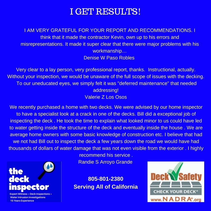 Bill Leys, owner of William Leys Waterproofing Consultants LLC has been inspecting decks since 2005 after he was approached about the subject by an HOA manager at a Reserve Study trade event. His first HOA inspection in Walnut Creek revealed massive defects in an apartment to condo conversion building, and from there Bill began doing more and more deck inspections all over California for different management companies and Associations.