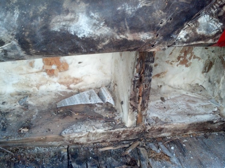 I was called because the home inspector did call out a problem with a roof deck drain. The area around the drain had soft spots in the plywood. My firm contracted with the new owner to replace the damaged plywood at the drain area only, install a new drain and waterproof it back. The owner liked the price and our plan because it was less than the credit back he got from the seller for doing the work. Note to buyers-have all repairs done before closing! The seller would have had to pay for what is coming next in this story.